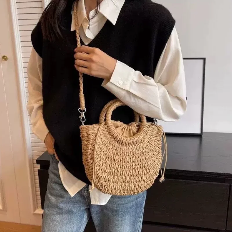 Пляжная сумка ручной работы из соломенного ротанга в форме полумесяца, большая вместительная женская летняя полая сумка через плечо