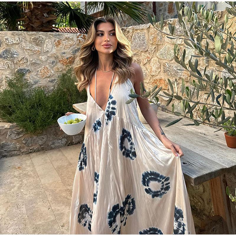 Пляжное женское платье с принтом, сексуальное женское отпускное платье с открытой спиной и без рукавов, летнее повязочное элегантное женское платье с v-образным вырезом L