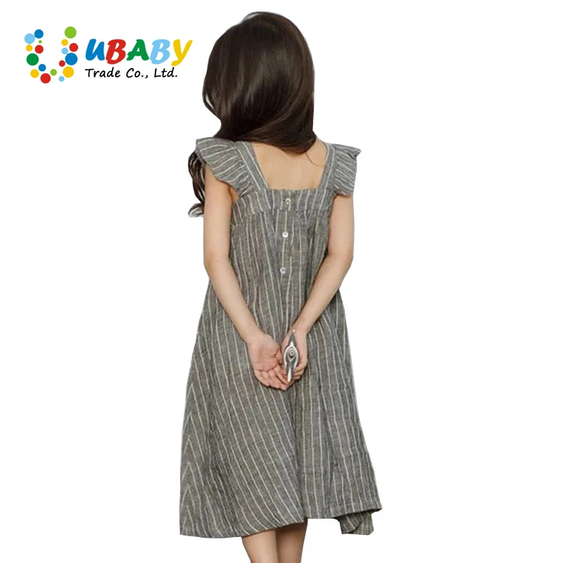 Пляжное праздничное платье в полоску с оборками и рукавами-фонариками для маленьких девочек, модная летняя одежда, хлопковая льняная одежд...