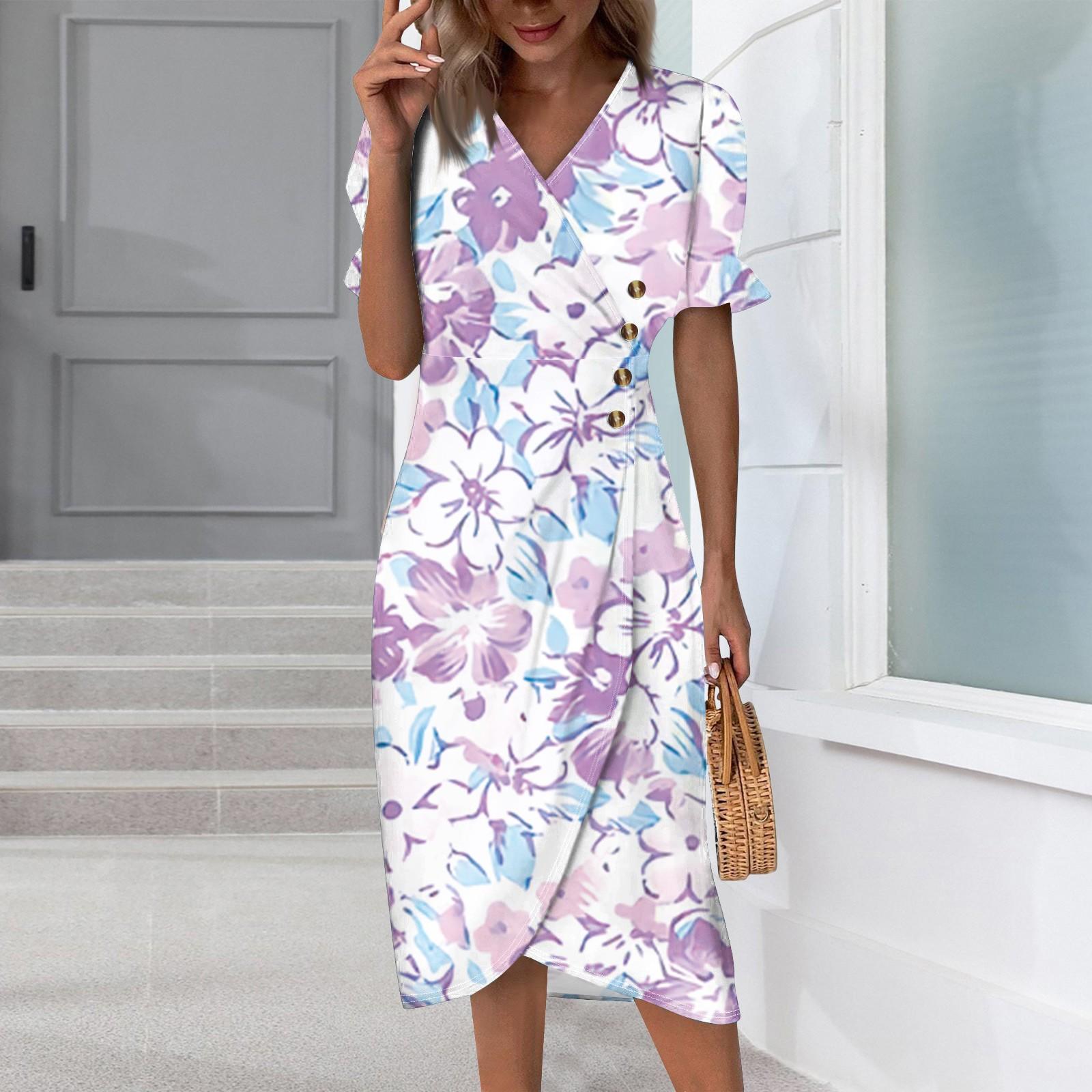 Пляжные платья для женщин, весна-лето, элегантное платье с V-образным вырезом и цветочным принтом в стиле бохо, струящееся гавайское платье макси с рюшами XXL