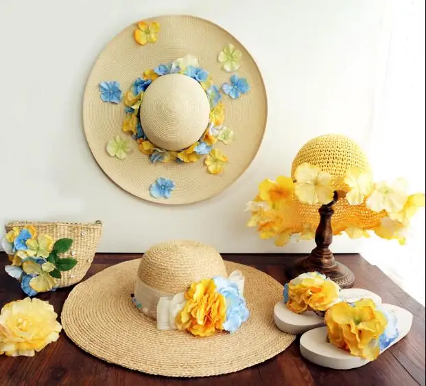 Пляжные тапочки HAHAFLOWER в богемном стиле, шлепанцы с застежкой на носок, сандалии на танкетке с цветочным принтом, комплект из соломенной шляп...