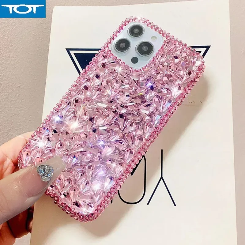 For iPhone 16 15 14 13 12 Mini 11 Pro XS Max XR X 8 7 Plus Super Fashion Full Bling Small Crystal Diamond Clear Phone Case Cover