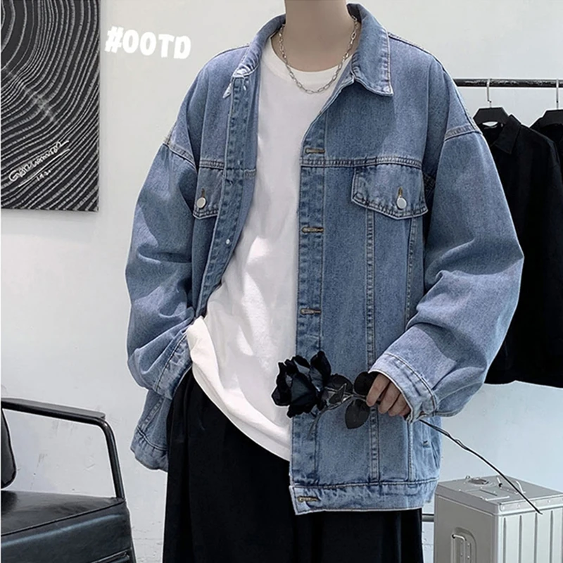 Повседневная джинсовая куртка в стиле ретро для мужчин, осенне-зимняя молодежная модная брендовая универсальная длинная свековая свободная верхняя одежда из хлопка и полиэстера...