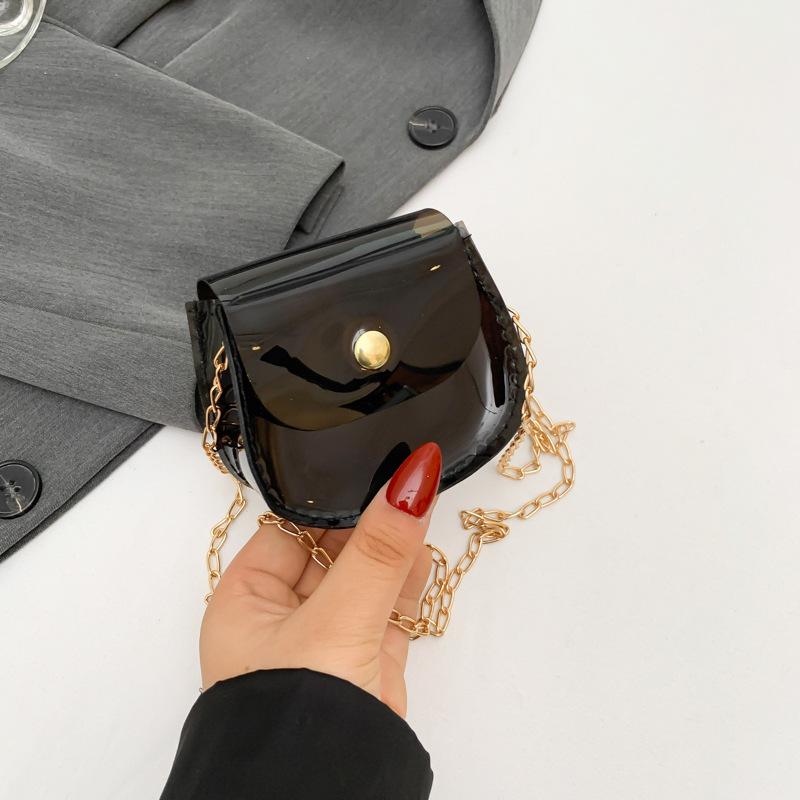 Повседневная личность простая сумка-цепочка свежая и сладкая желеобразная прозрачная сумка-седло модный тренд одно плечо косая сумка-спин чёрный