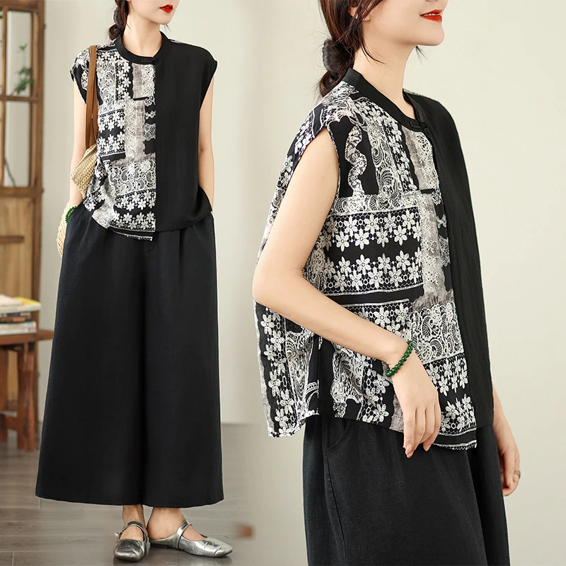 Повседневная льняная цветная блузка с принтом, круглая, накладная, летняя, новая, винтажная, дышащая, маленькая, женская мода