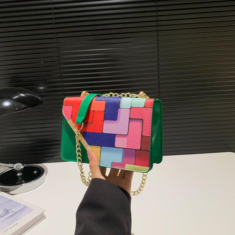 Повседневная маленькая свежая и модная маленькая сумка на цепочке для женщин летом, новая модная контрастная цветная маленькая квадратная сумка через плечо