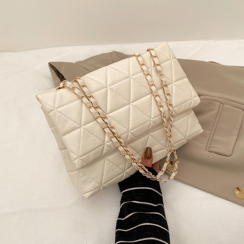 Повседневная маленькая сумка с ромбовидной цепочкой 2024 года, новая модная женская сумка, простая сумка-мессенджер в иностранном стиле, популярная маленькая квадратная сумка белый
