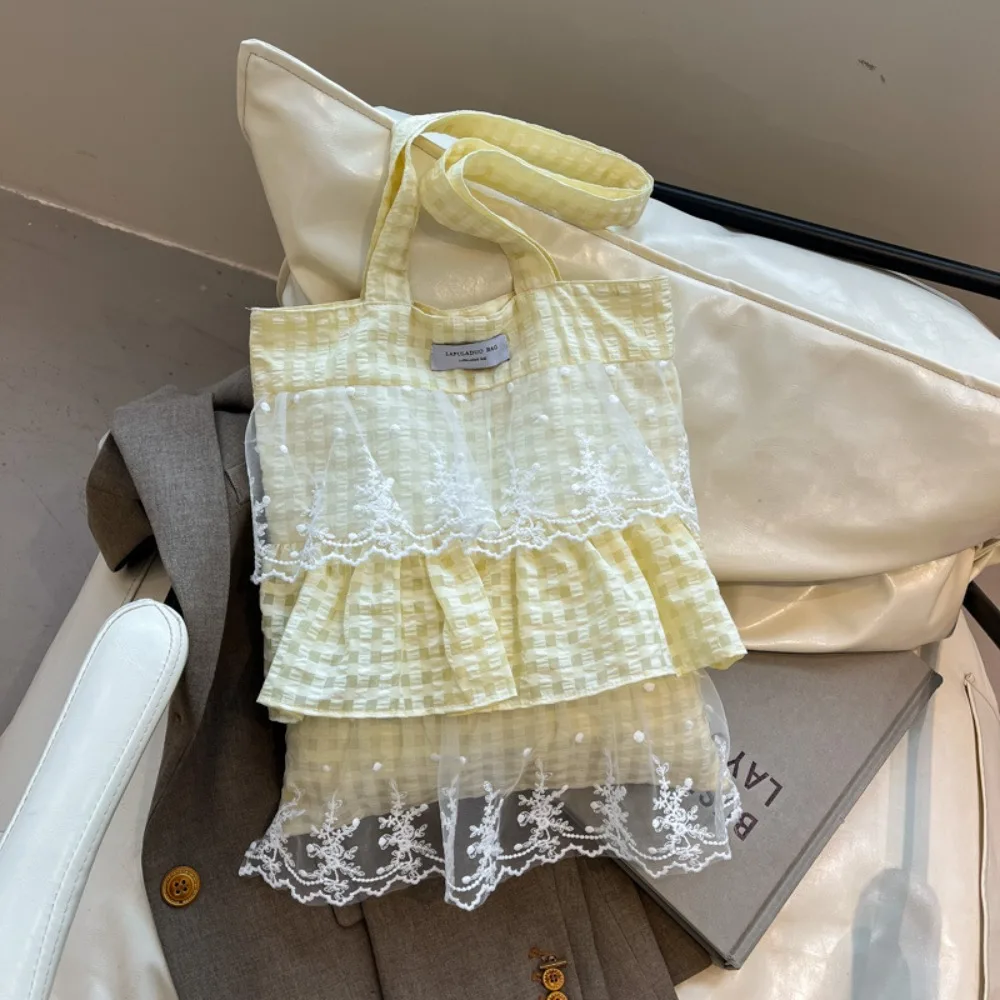 Повседневная милая свежая кружевная сумка с бантом, милая сумка на плечо с рюшами и рюшами, сумка для подмышек, тканевая сумка для пельменей в пасторальном стиле для покупок