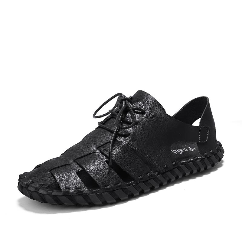 Повседневная модная мужская обувь из мягкой кожи без застежек, нескользящие пляжные летние сандалии с двумя пряжками, тапочки, шлепанцы, прогулочная обувь 44 чёрный