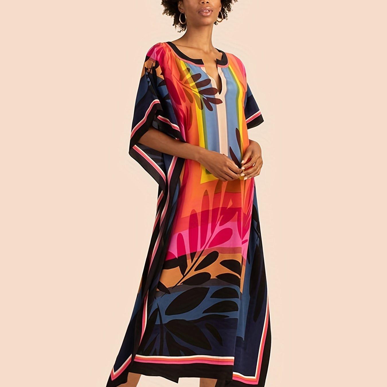 Повседневная накидка больших размеров, женская большая накидка с цветными блоками и принтом листьев, V-образный вырез, рукав «летучая мышь», разделенный подол, макси-накидка для Конингсдага/Дня короля One-size