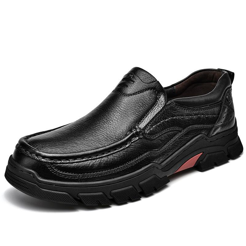Повседневная обувь для активного отдыха, мужская натуральная кожа, весна и осень, толстая подошва, износостойкая рабочая обувь, черные кожаные туфли с большим носком, мужская обувь для папы 44