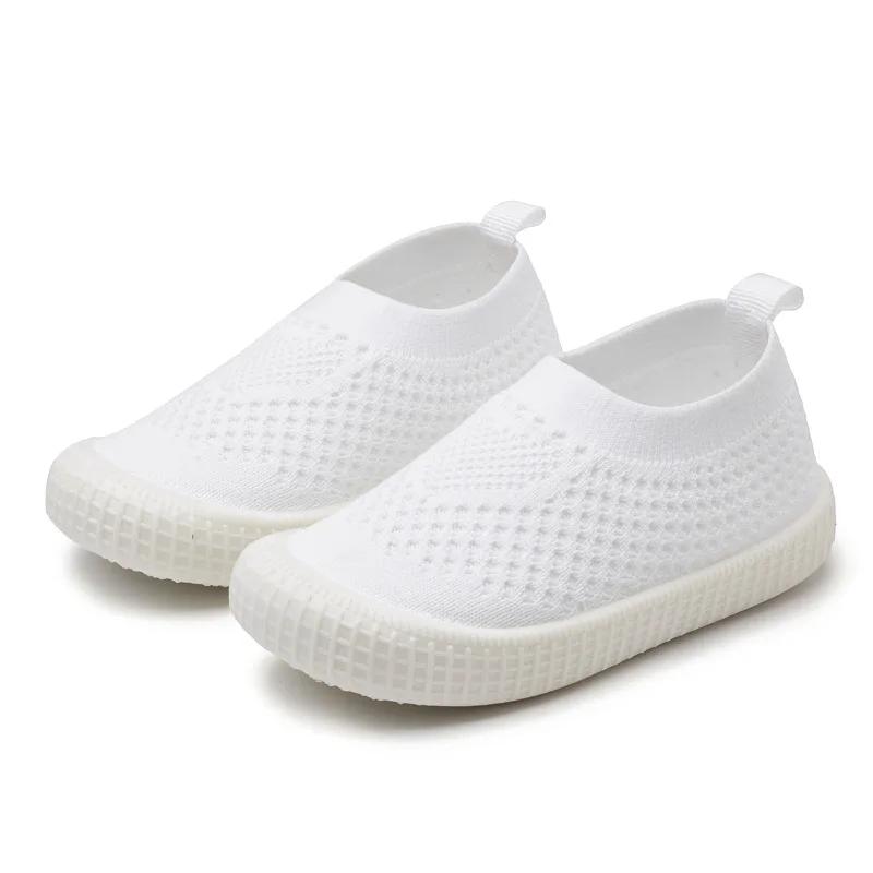 Повседневная обувь для маленьких детей, детские кроссовки, мягкая эластичная ткань, дышащая, без застежек, спортивная обувь для мальчиков и девочек, модная, популярная 21 белый