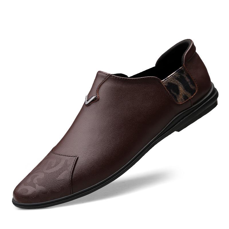 Повседневная обувь из коровьей кожи большого размера, лоферы для стопы, деловая модельная кожаная обувь, мужская дышащая обувь, внешнеторговая обувь для ленивых 46 коричневый