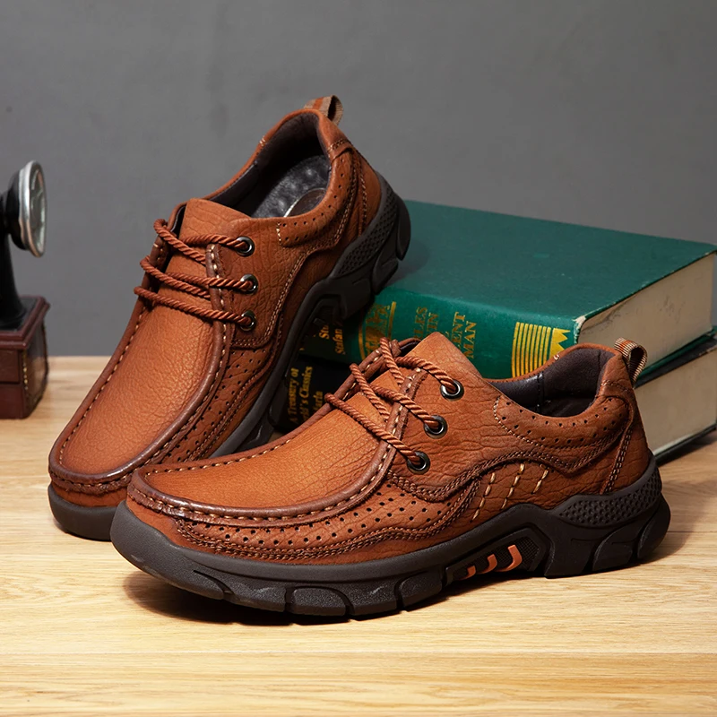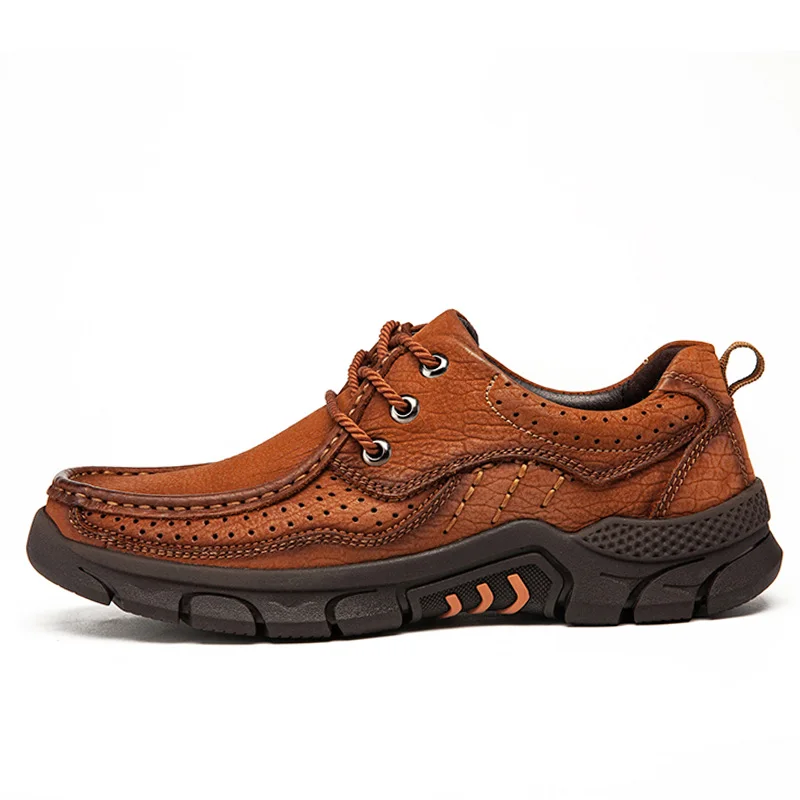 Повседневная обувь из натуральной коровьей кожи; Удобная мужская обувь на плоской подошве со шнуровкой; Нескользящая уличная прогулочная М...