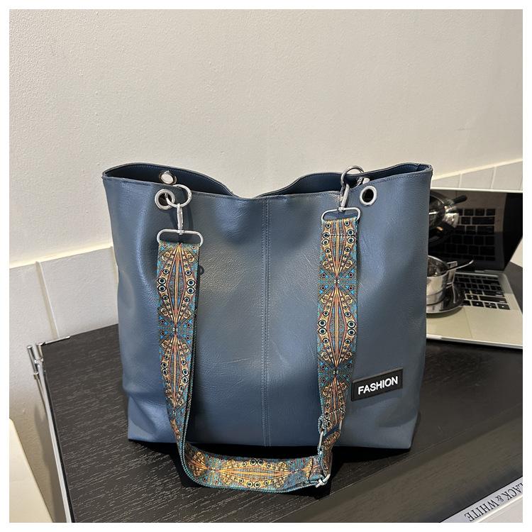 Повседневная однотонная повседневная сумка 2024 года, новая модная зимняя сумка большой вместимости для поездок на работу, простая сумка-тоут на одно плечо с косым креплением синий