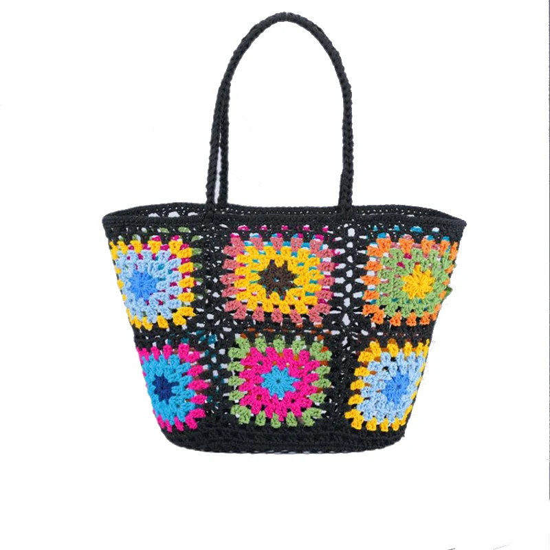 Повседневная пляжная сумка большой емкости, дизайнерская вязаная тканая женская сумка, летняя хлопковая сумка с цветочным принтом Бали, женская дорожная большая корзина-кошелек