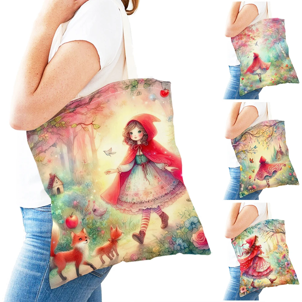 Повседневная сказочная маленькая красная шапочка для девочек, сумка для покупок, женские сумки-шопперы, женская сумка-тоут с двойным принтом, сумка через плечо с героями мультфильмов