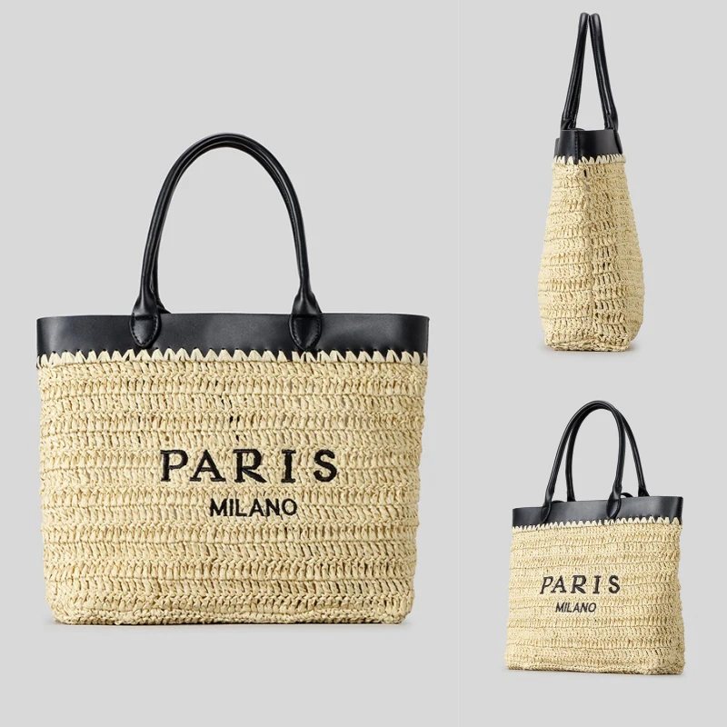 Повседневная соломенная сумка большой емкости с буквами, соломенная большая сумка в стиле пэчворк, простая пляжная сумка, модная роскошная универсальная сумка, нишевая сумка