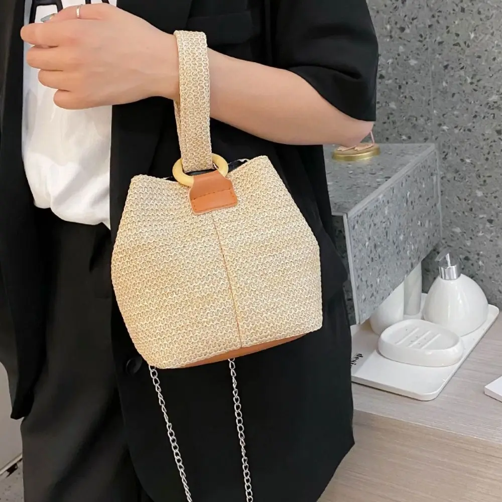 Повседневная соломенная сумка-ведро в корейском стиле, сумка-тоут, тканая сумка через плечо, кошелек для покупок, маленькая сумка для телефона, дорожная сумка