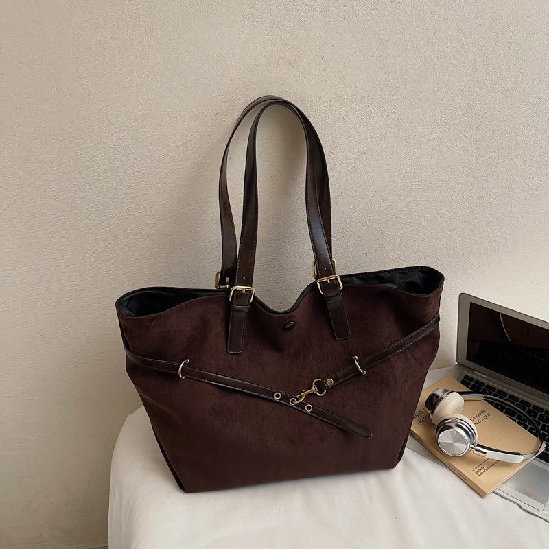 Повседневная сумка для поездок на работу в стиле ретро большой вместимости женская 2025 новая модная осенняя сумка через плечо простая портативная сумка-тоут темно-коричневого