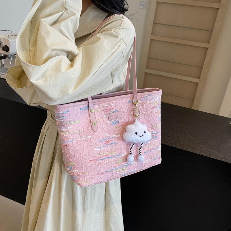 Повседневная сумка женская новая летняя на плечо сумка-тоут большой вместимости студенческая ручная сумка для занятий розовый