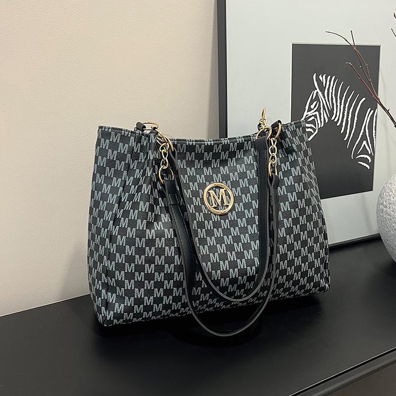 Повседневная сумка-тоут Новая модная наплечная сумка Большая вместимость Простая ретро сумка-подмышкой с принтом чёрный