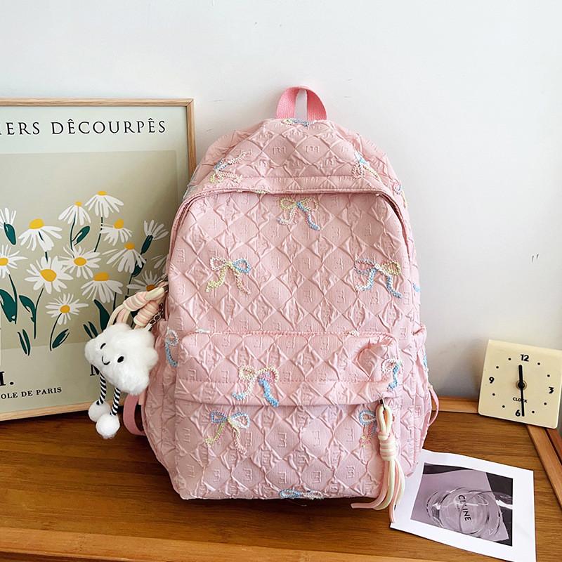 Повседневная сумка через плечо для девочек с бантом, из мягкого нейлона с деталями строчки, для путешествий и школы розовый