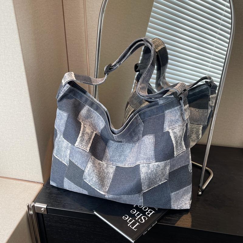 Повседневная сумка через плечо из ткани в стиле деним, можно носить через плечо, большая вместимость, модная повседневная популярная