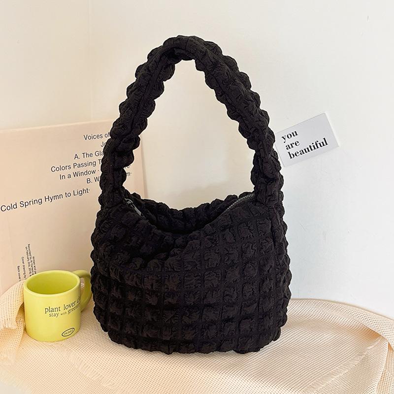 Повседневная сумка через подмышку, плиссированная сумка, женская, 2024, новая популярная трендовая сумка, модная простая сумка через плечо чёрный