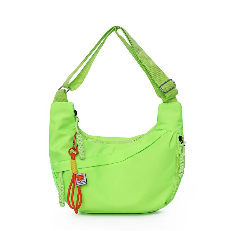 Повседневная трендовая нейлоновая сумка женская новая городская простая большой вместимости на одно плечо через плечо сумка-пельмень для通勤 Add pendant флуоресцентный зеленый