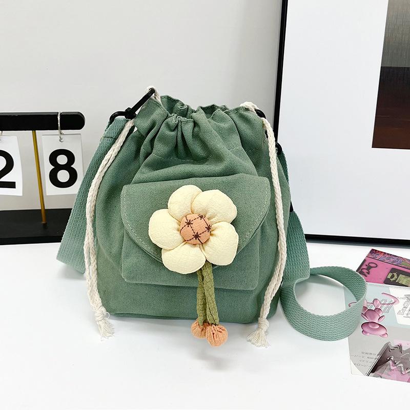 Повседневная универсальная наплечная сумка женская сумка маленькая свежая сумка-ведро на шнурке милая цветочная холщовая сумка-мессенджер one size fits all зелёный