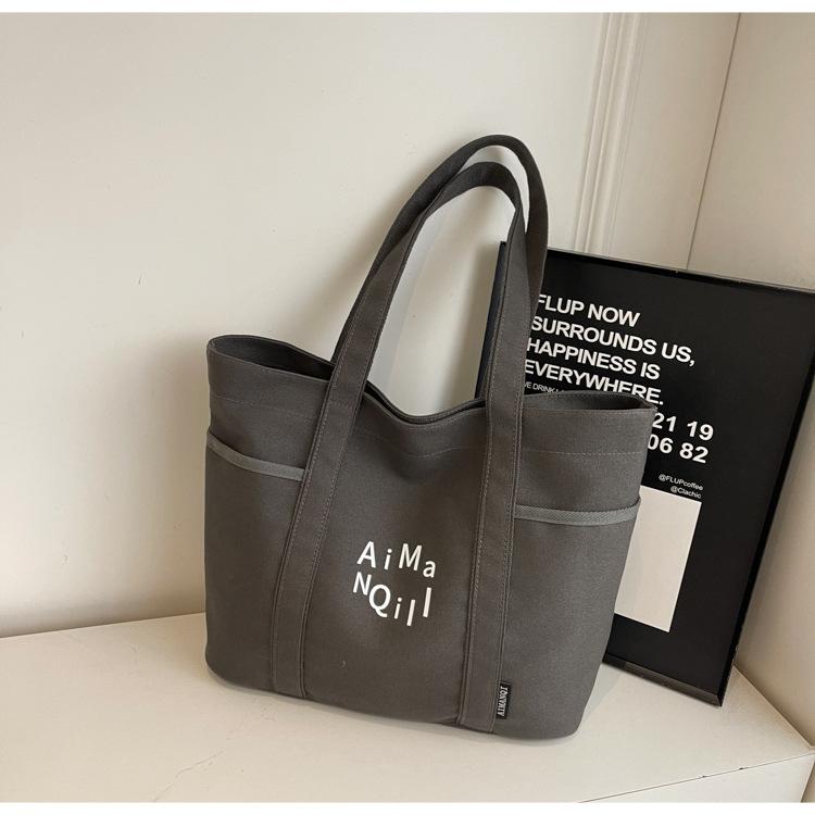Повседневная холщовая сумка-тоут женская осенне-зимняя простая большая вместительная сумка для выхода легкая сумка-тоут сумка для поездок на работу чёрный