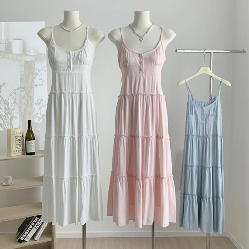 Повседневное летнее платье-комбинация А-силуэта, хлопковое белое, розовое, синее элегантное однотонное милое платье с поясом на резинке, праздничное платье-слинг для отпуска