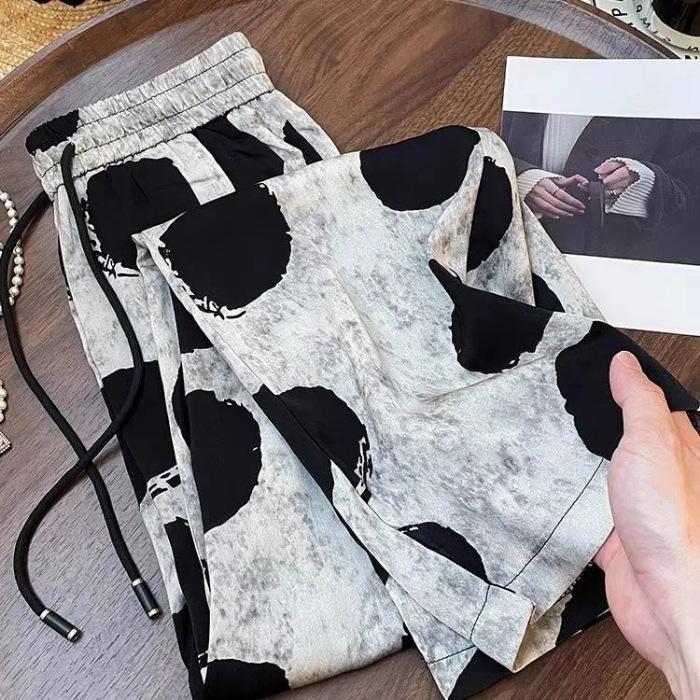 Повседневные брюки в стиле ретро в горошек с широкими штанинами, новый стиль, свободные универсальные узкие повседневные брюки для женщин 3XL