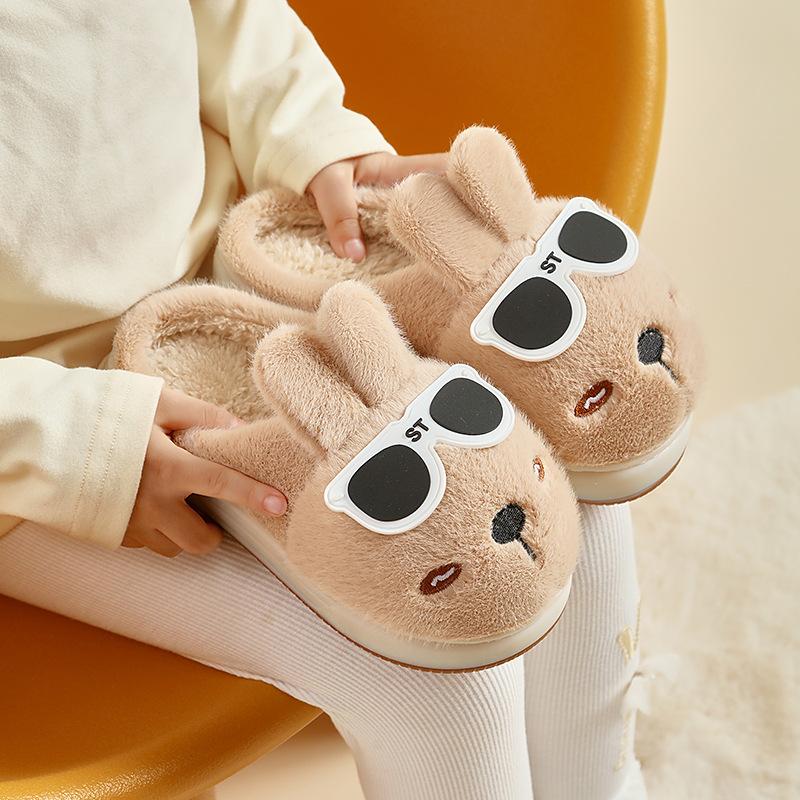 Повседневные детские хлопковые тапочки осень-зима милые мультяшные милый кролик светящиеся тапочки для мальчиков и девочек домашние комнатные пушистые тапочки 32-33 темно-коричневого