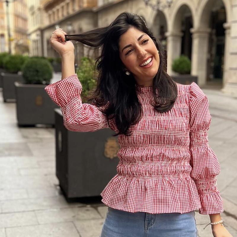 Повседневные модные пышные клетчатые топы с длинными рукавами, женские элегантные футболки с круглым вырезом и рюшами в стиле ретро, женские весенние эстетичные эластичные уличные одежды, одежда S красный