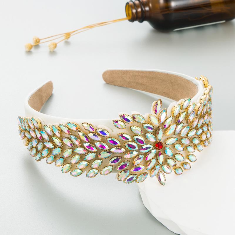 Повязка на голову в стиле ретро в стиле барокко, тяжелая стеклянная повязка для волос с широкими краями, женская повязка на голову OneSize белый