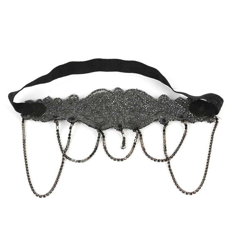 Повязка на голову в стиле флаппер «Великий Гэтсби» Ретро Стразы Кисточка Свадебные аксессуары для волос чёрный