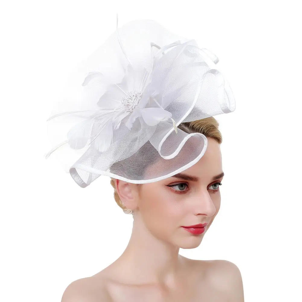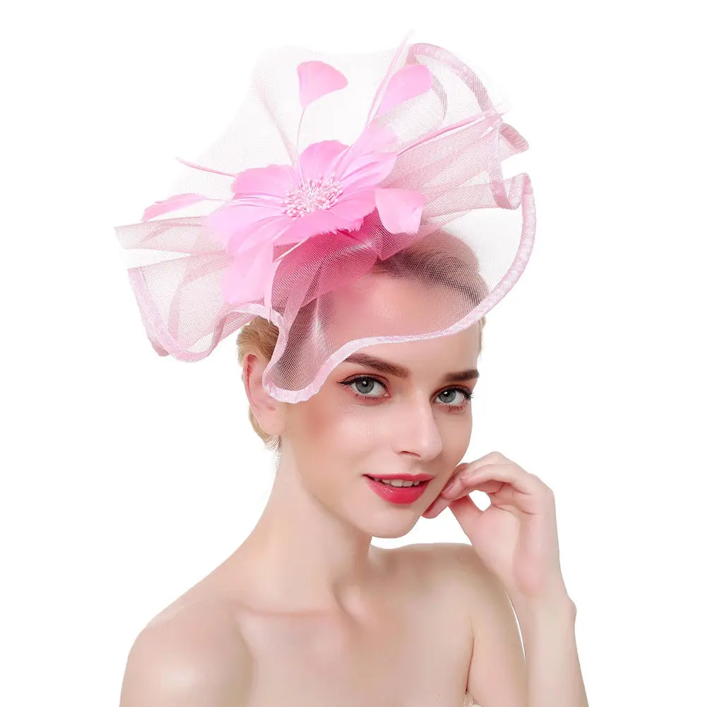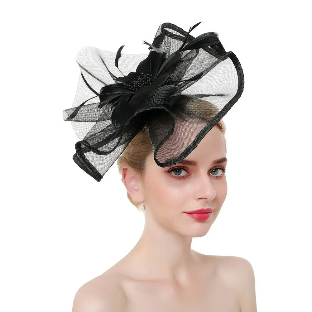 Повязка на голову женская с большими перьями, стильная шляпа с цветочным принтом в стиле пэчворк, для свадьбы, чаепитивечерние, Дерби, церкв...