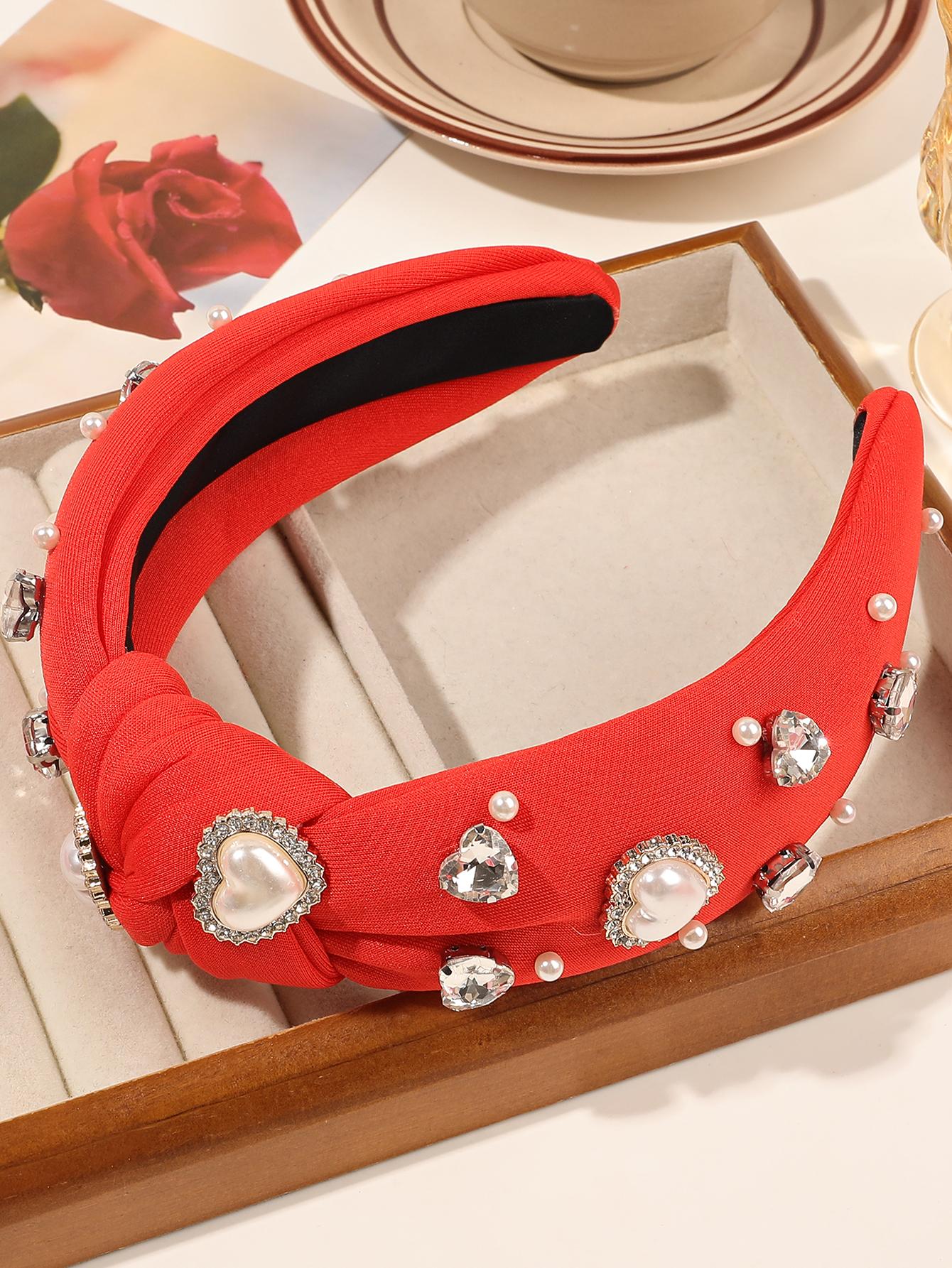 Повязки на голову ко Дню святого Валентина для женщин, ободок для волос с жемчугом и стразами, завязанный в форме сердца, повязка на голову с кристаллами, нескользящая широкая повязка на голову с узлом сверху