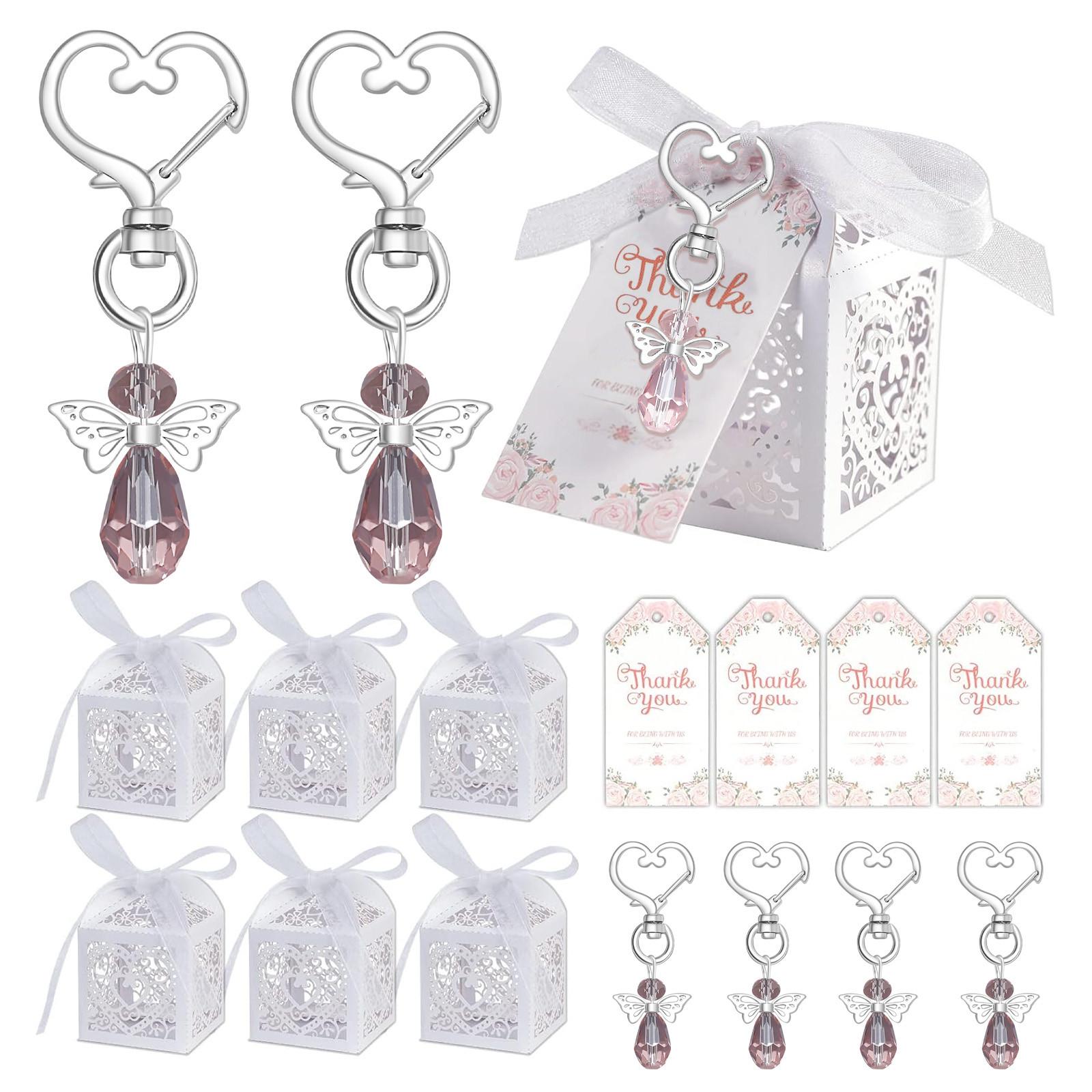 Подарок на вечеринку для малышей, брелок для ключей «Кристальный ангел», подарок на свадьбу, день рождения, вечеринка, подарок в знак благодарности, 1 комплект(24pcs) One Size розовый