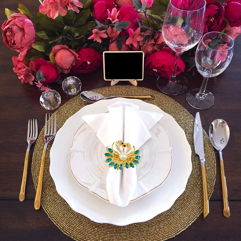 Подарок на день Святого Валентина, набор из 6 синих колец для салфеток, изысканное кольцо для салфеток с голубыми стразы, настольное украшен...