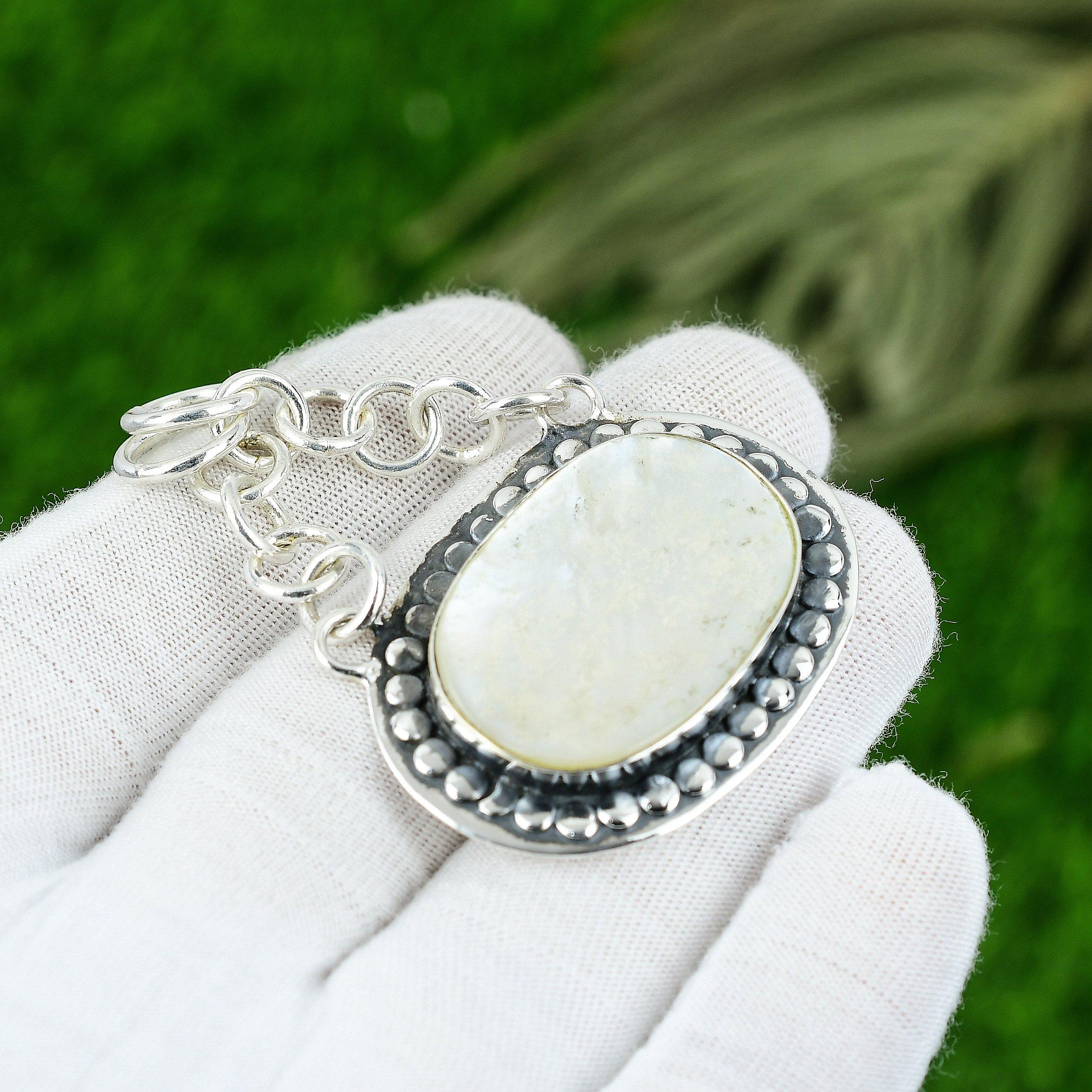 Подарок на день рождения для нее Подвеска с натуральным перламутром и драгоценным камнем из серебра 925 пробы