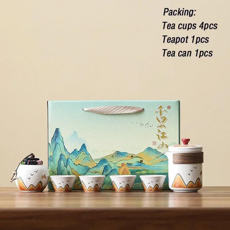 Подарочная коробка, керамическая чашка для чая в китайском стиле, фарфоровый керамический чайник, банка для чая, чашки для эспрессо, керамическая кружка для кофе, кружки для чая, 1 набор 6 PCS