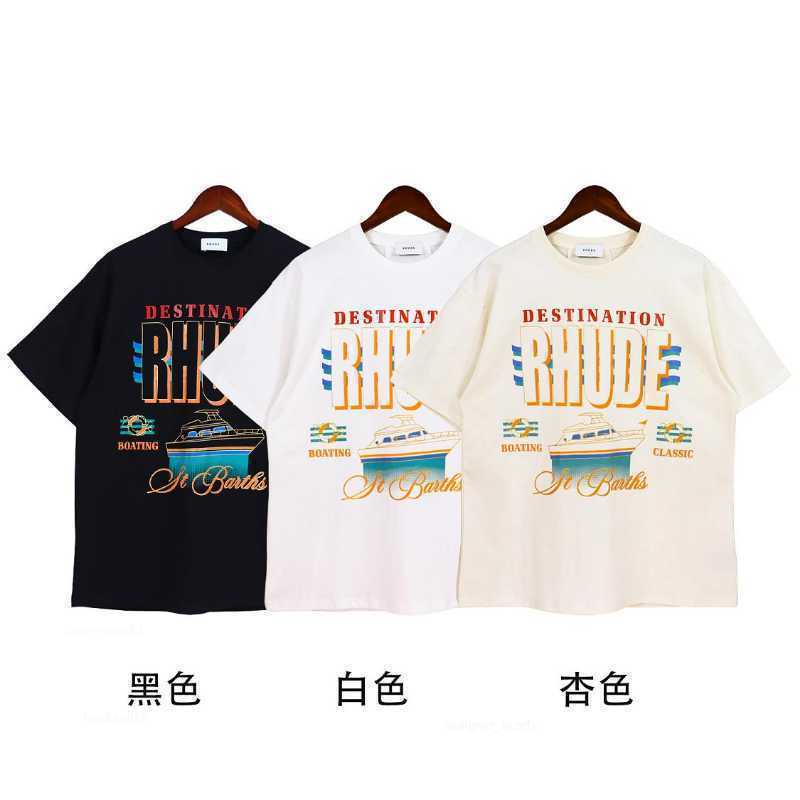 23SS Classic Letter Print Rhude T Shirt Men Women EU Size 100% Cotton Rhude Top Tees High Street Summer Hippie Clothes, Black