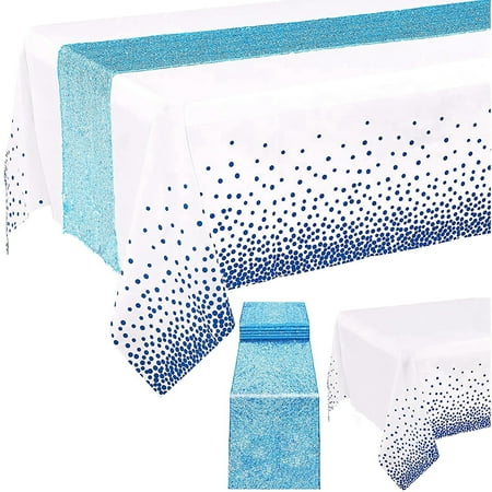 CenturyX Table Cloth Set Shiny Long Sequin Table Runner with Dots Tablecloth
