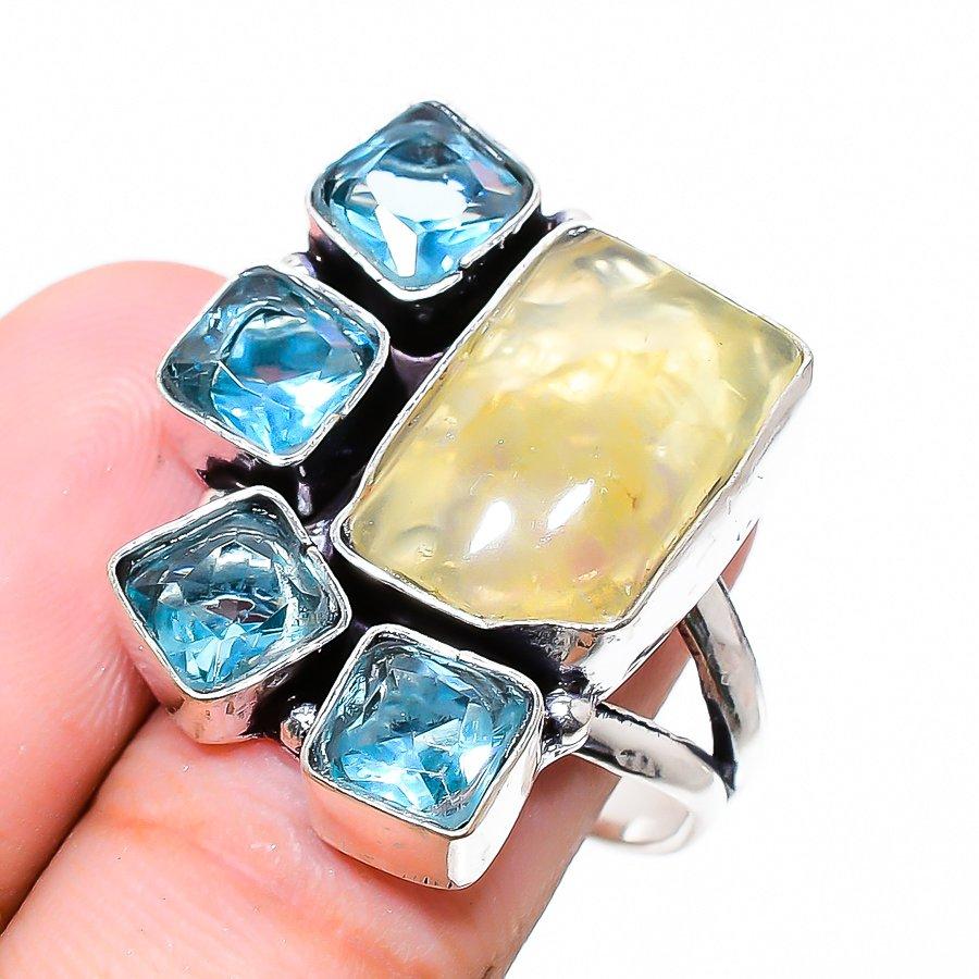 Подарочное кольцо из стерлингового серебра 925 пробы с натуральным пренитом и топазом, размер 7,5 o6n49