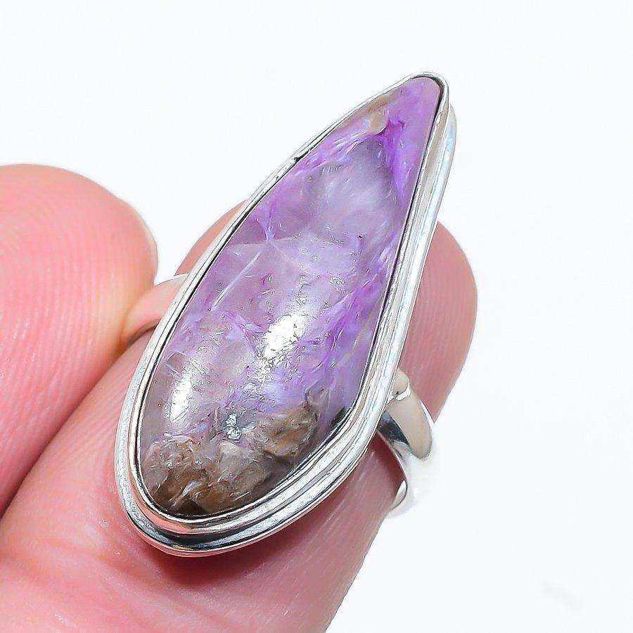Подарочное кольцо из стерлингового серебра 925 пробы с натуральным российским чароитом, размер 6,5 C1U20