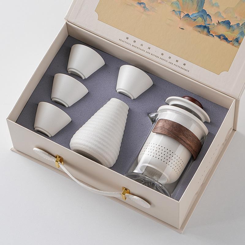 Подарочный набор для деловых поездок Гуочао, чайник и четыре чашки, портативный, для отпуска, для мамы, подарок на Праздник середины осени, на выпускной