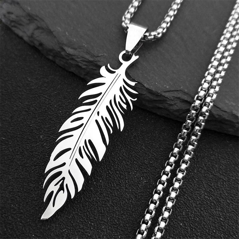 Подвеска в стиле бохо с перьями, мужское ожерелье для женщин и мужчин, нержавеющая сталь, серебряный цвет, цепочка в виде листьев, ювелирное изделие, подарок, воротник hombre